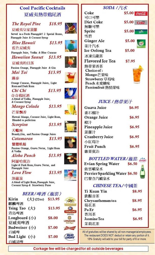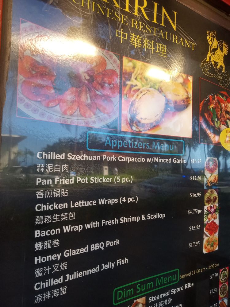 Introducing the menu at Kirin Restaurant, a hidden gem located at 2424 Kalakaua Ave in Honolulu, Hawaii. This Asian-owned establishment offers a wide array of dishes, including dim sum, vegetarian options, seafood, and classic Chinese cuisine. The restaurant provides a comfortable dining experience with options for private dining, outdoor seating, and wheelchair accessibility. Customers have raved about the delicious dim sum, flavorful duck dishes, and fresh seafood. With a full bar, happy hour specials, and free Wi-Fi, Kirin Restaurant is a perfect choice for any occasion, whether it's a casual lunch with friends or a special dinner celebration. Don't miss out on the honey walnut prawns, garlic spinach, and Peking duck buns. Experience the fantastic flavors and excellent service at Kirin Restaurant today.